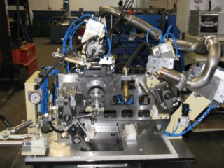 Among other things, we build “end of line” test benches with the highest degree of automation for testing engines of various types and outputs. Conversion to other engine types is possible within minutes using a pallet changing system.